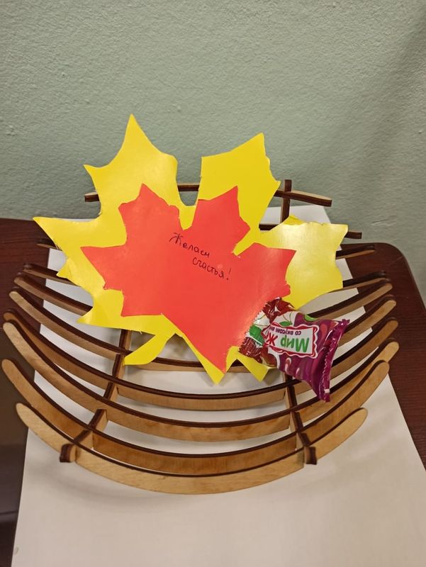 Утром педагогов встречали старшеклассники, поздравляли с праздником и вручали подарки - корзинки с сюрпризами, которые обучающиеся смастерили своими руками.