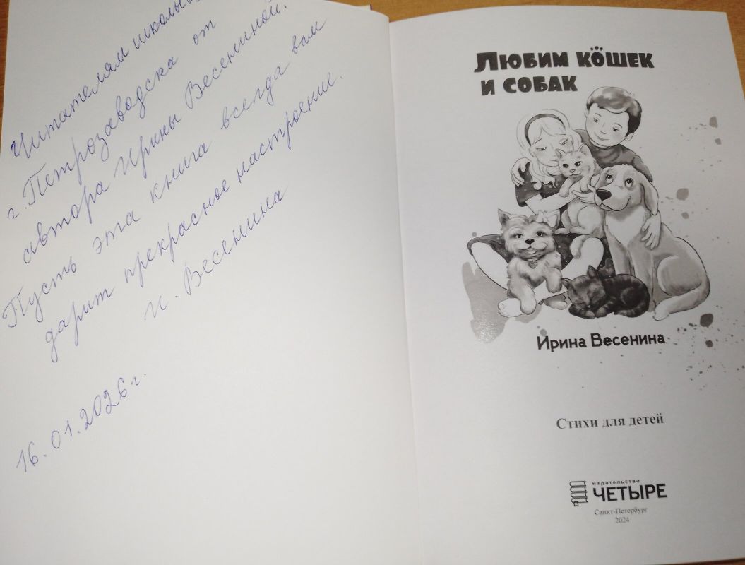 16 января 2026 года в школьной библиотеке состоялась презентация сборника стихов «Любим кошек и собак» карельского автора Ирины Весениной. Эта книга рассказывает о домашних питомцах писательницы, которые по сей день живут в её семье.
